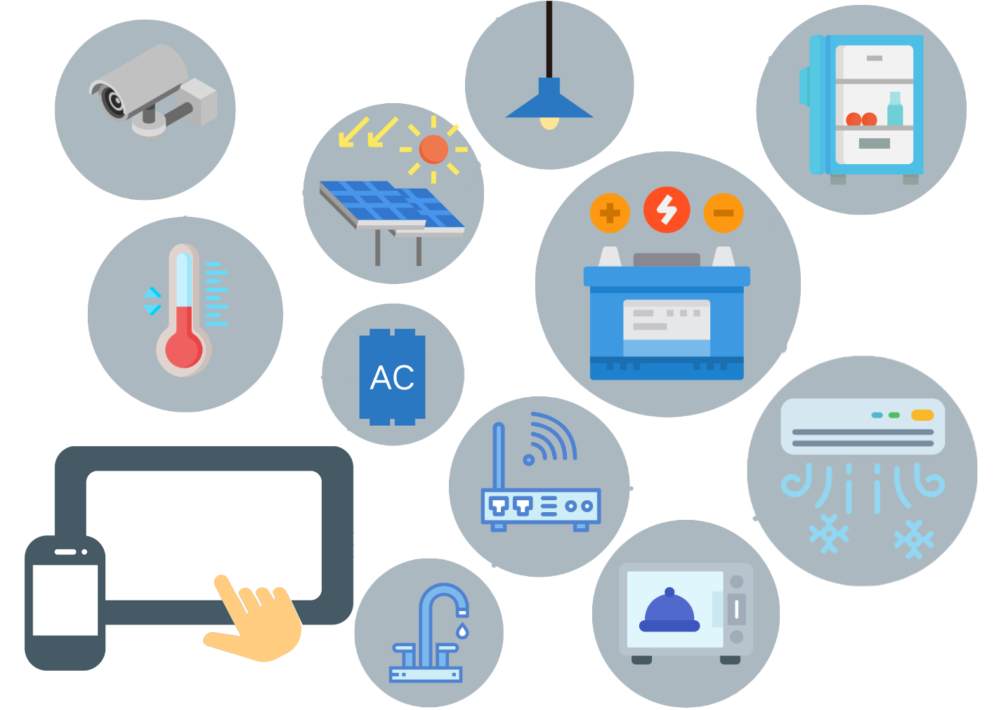 Smart Control – Real-time monitoring and management of appliances, water pumps, lighting, and HVAC via touchscreen or mobile app