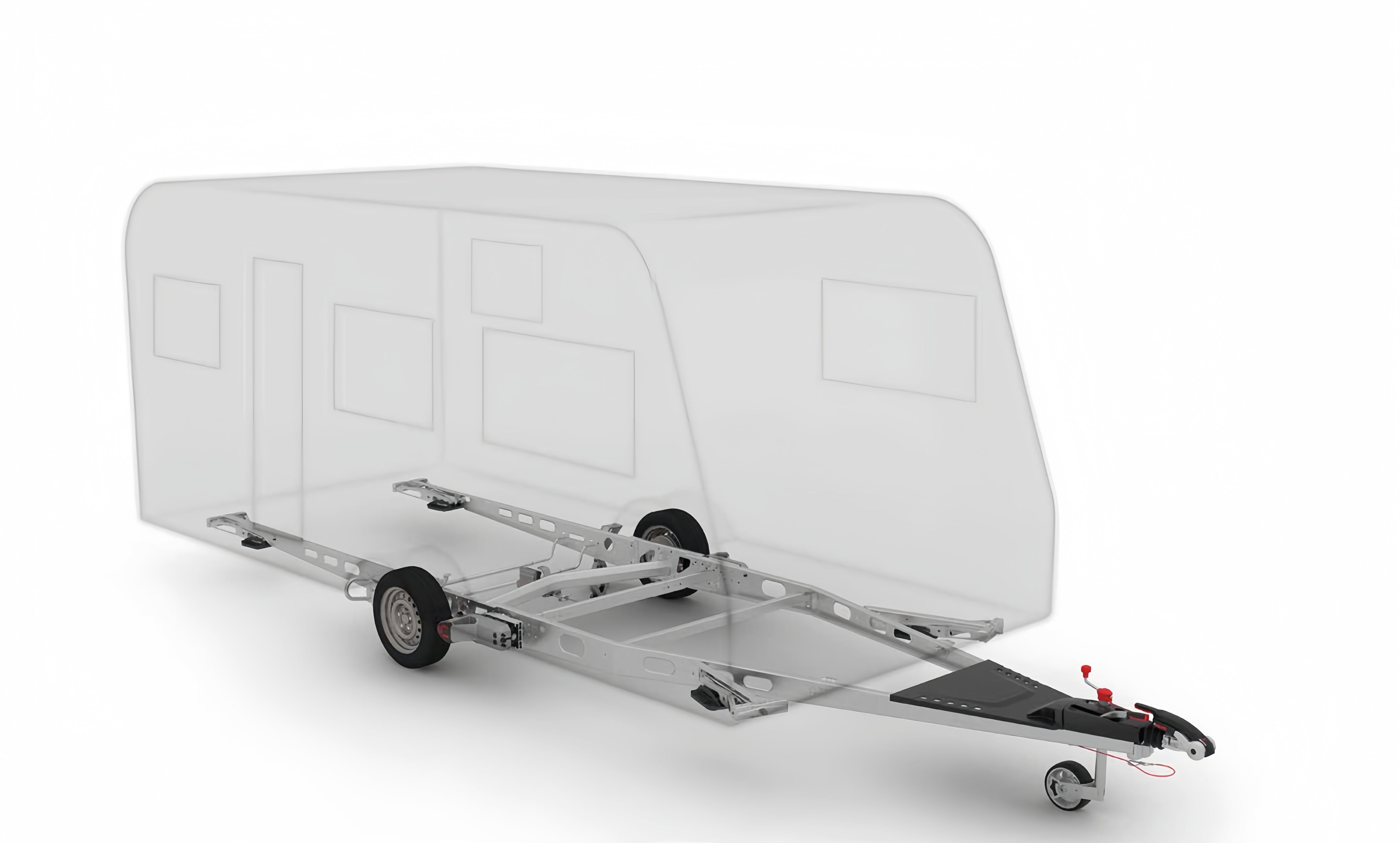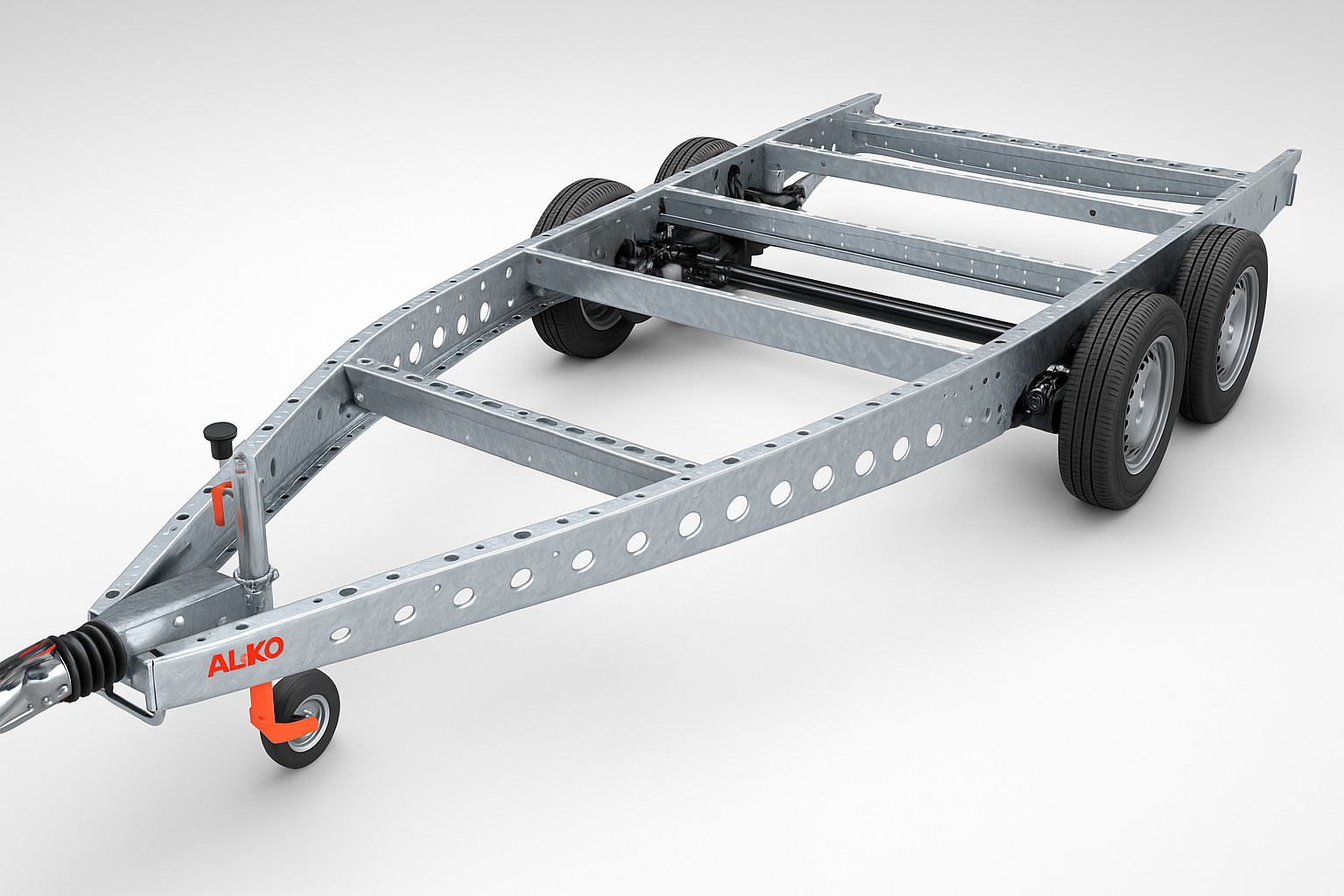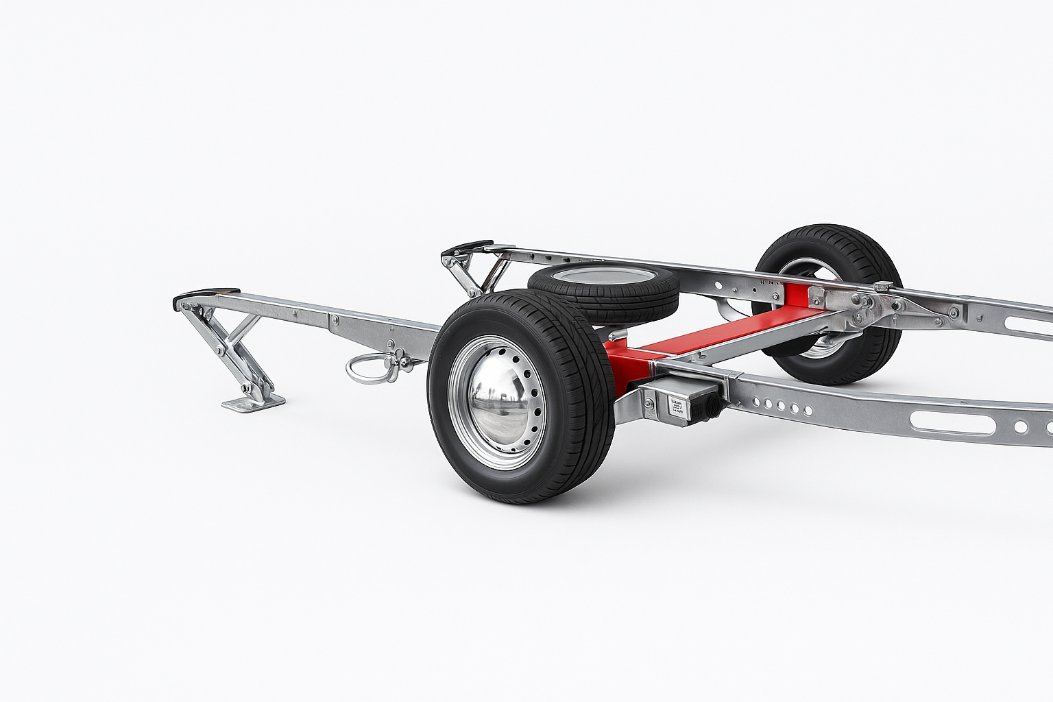 Suspension with integrated steel frame, rust-resistant components, and four stabilizing jacks for secure, level support.