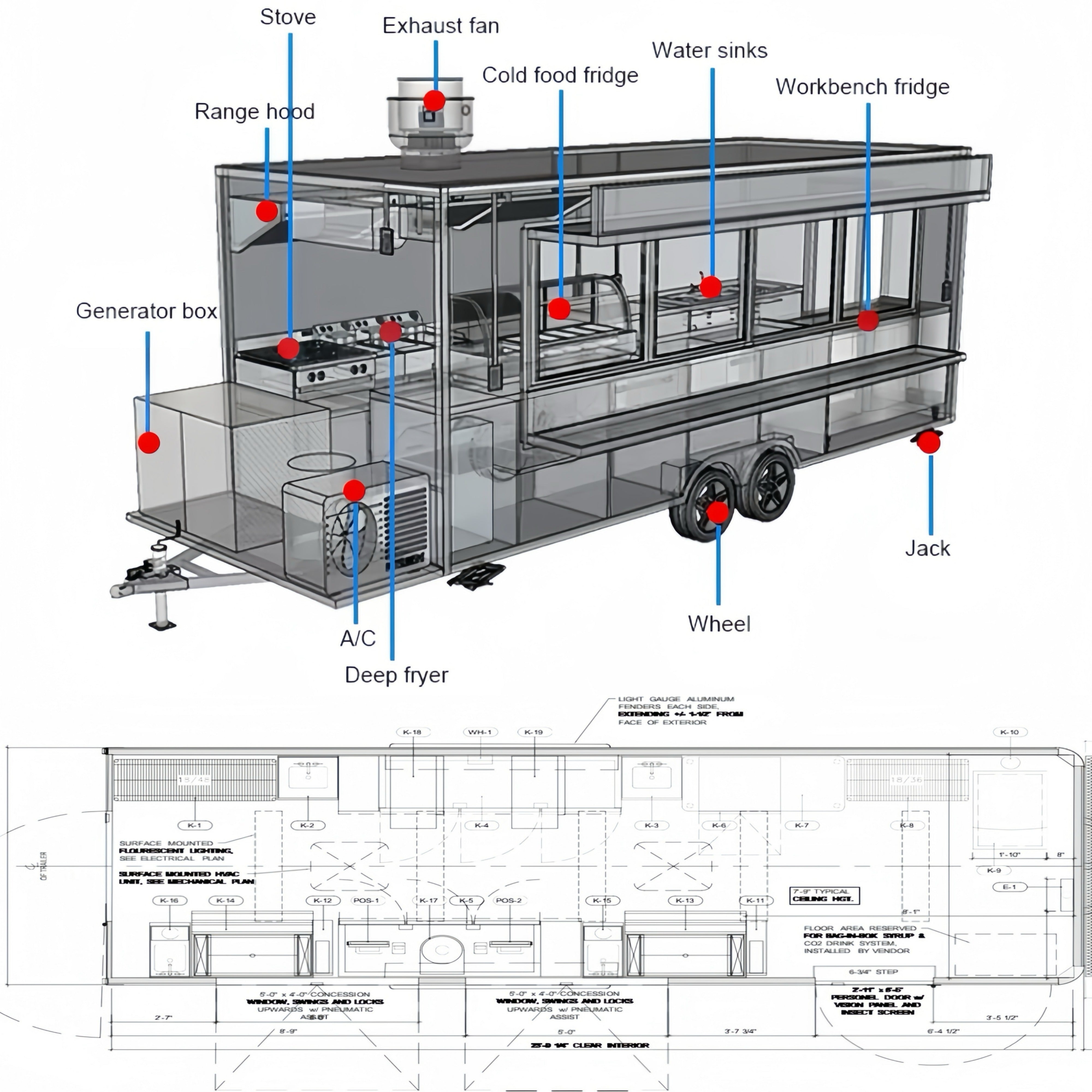 Highlights: food truck, food trailer, concession trailer, pizza trailer, BBQ trailer, taco truck, mobile kitchen, catering trailer, event food truck, double-deck food trailer, food truck for sale, concession trailer for sale, buy food truck